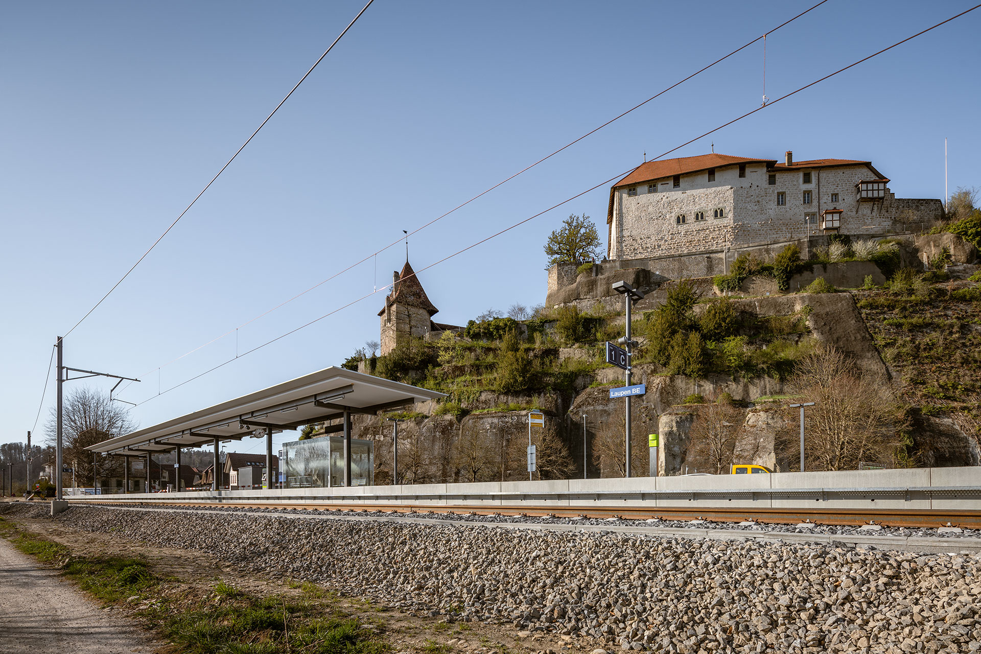 Seit Dezember 2019 hat die SBB im Auftrag der STB Sensetalbahn AG zwischen Flamatt und Laupen die Gleis- und Fahrleitungsanlagen instand gesetzt und die Bahnhöfe ausgebaut. An allen vier Bahnhöfen entlang der Strecke – Flamatt Dorf, Flamatt, Neuenegg und Laupen – können die Reisenden dank höheren Perrons nun stufenfrei in die Züge ein- und aussteigen. L2A Architekten begleitete den Ausbau vonSeite Architektur und war für die Bauten und Gestaltung der vier Stationen verantwortlich.