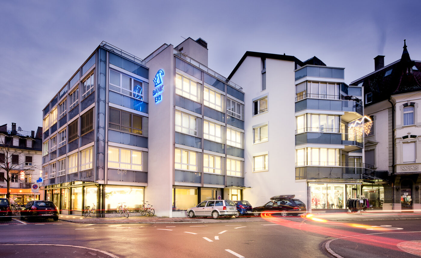 Seit dem letzten Umbauprojekt im Jahr 1999 verzeichnete die Bank EKI Genossenschaft ein kontinuierliches Wachstum. Mit dem stetigen Anstieg der Geschäftszahlen stieg auch die Anzahl der Mitarbeitenden. Dieser Zuwachs von 29 auf heute 50 Vollzeitstellen stellte grosse Anforderungen an die bestehende Infrastruktur. Durch die bauliche Erschliessung der angrenzenden Liegenschaft an der Rosenstrasse 3 verfügen die Mitarbeiterinnen und Mitarbeiter der Bank wieder über ausreichend Platz. Im ersten und zweiten Stock finden sich grosszügig eingerichtete Büroräume. Die mit viel Glas gestalteten Räume lassen das Licht fliessen und wirken hell und freundlich. Zwei direkte Verbindungen zum Hauptgebäude erlauben es weiterhin, Abläufe und Wege kurz zu halten.