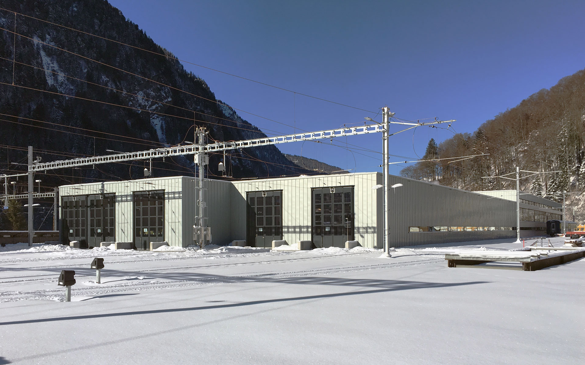 Das realisierte Erweiterungsprojekt bietet gedeckte Abstellmöglichkeiten für 6 Pendelzüge in einer unbeheizten Vorhalle. Zudem wurde die bestehende Werkstätte erweitert für den Unterhalt und die Revisionen der neuen Züge. Ausgestattet ist die Halle mit einer Zugshebeanlage, einer Drehgestellabsenkanlage und einem Unterflurdrehbank.