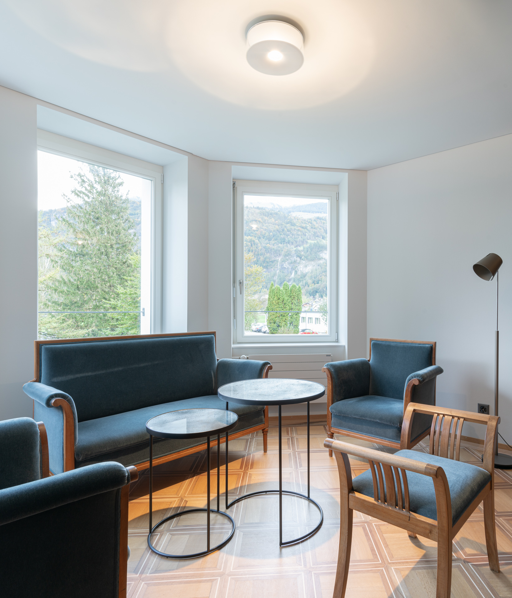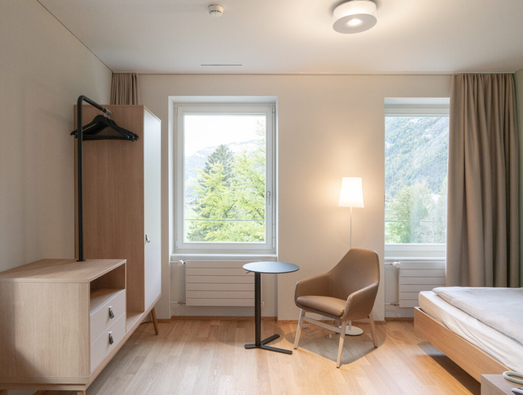 In mehreren Etappen wurde auch die gesamte Gebäudetechnik saniert. Ab Herbst 2024 werden die Räumlichkeiten des Hauses «Des Alpes» in neuem Glanz erstrahlen und einen gehobenen Eindruck hinterlassen. Das Angebot für Zusatzversicherte wurde an die spezifischen Bedürfnisse angepasst.