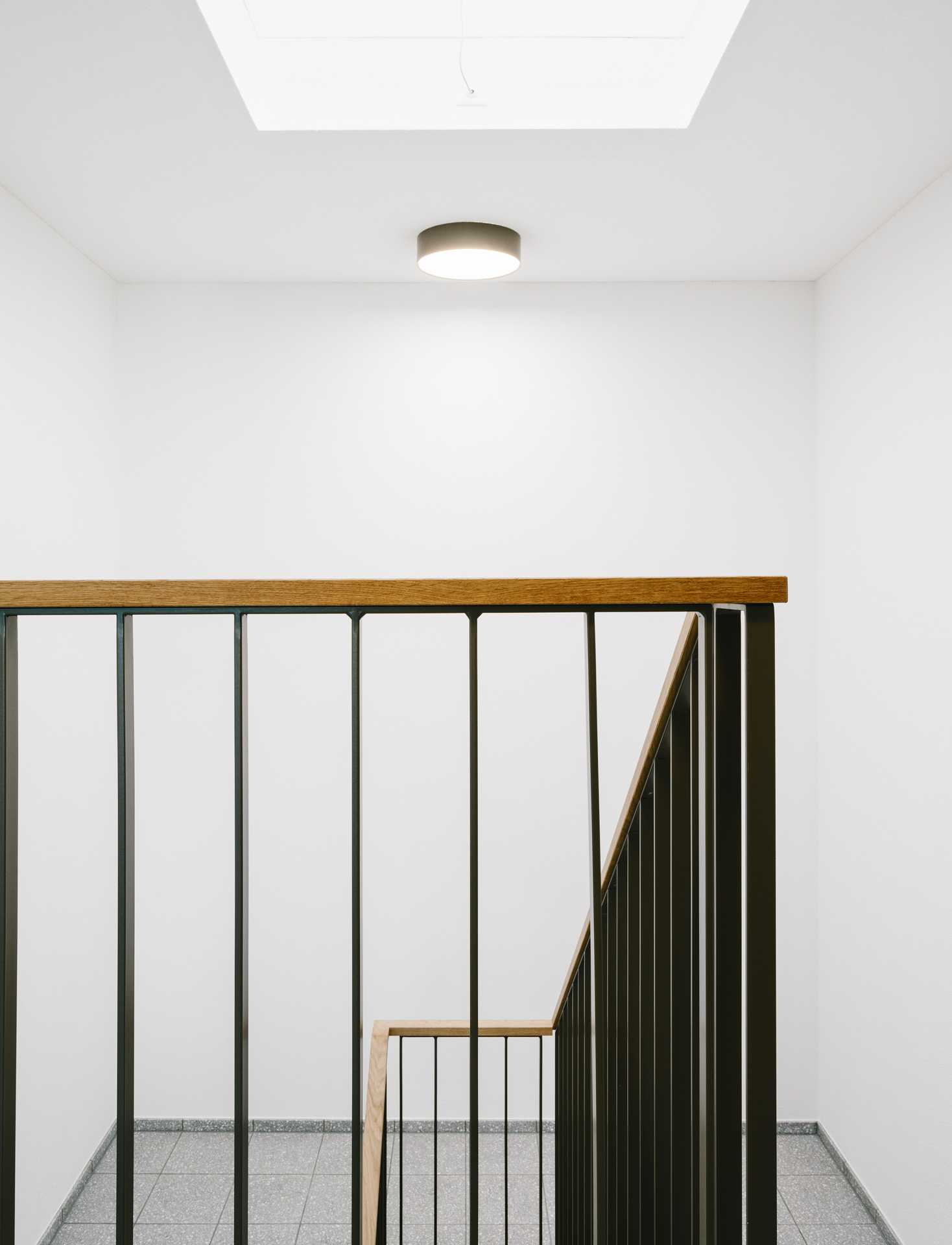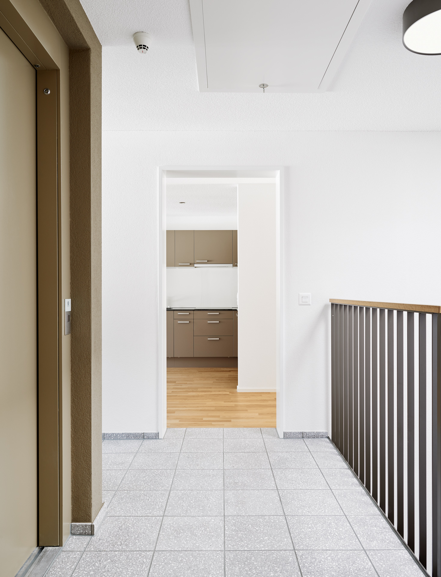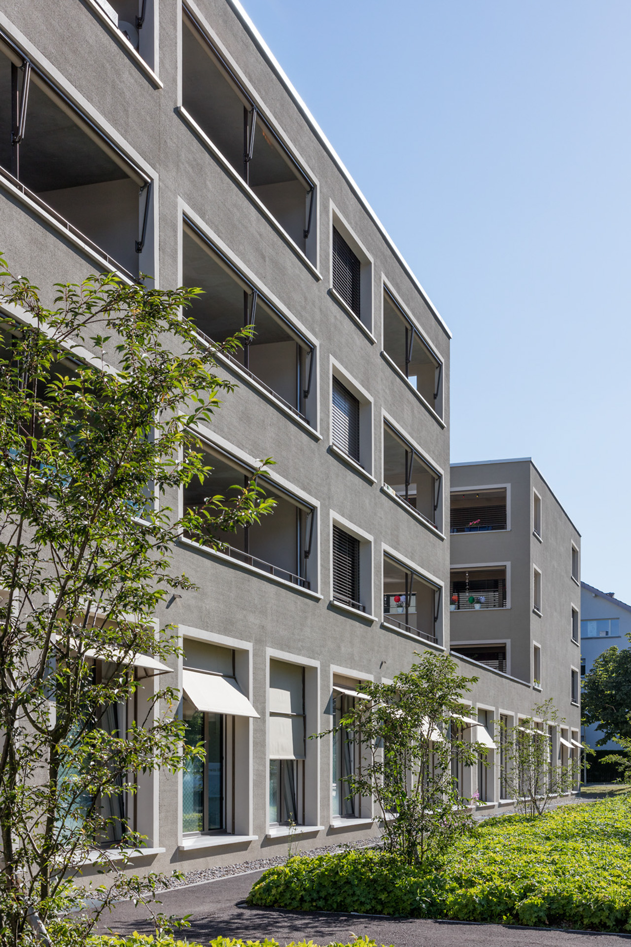 Im Projektvorschlag wird die Frage der Verdichtung und der damit verbundene bauliche Druck auf die bestehenden Grundstücke als entscheidendes Kriterium für eine angemessene Entwicklung des Areals gewertet: die volumetrische Gliederung der Baukörper, die Längenverhältnisse und die geometrische Ausrichtung respektieren die angrenzenden baulichen Strukturen. Das Ensemble des Zeughausareals bildet einen markanten Schwerpunkt in der Dorfstruktur entlang der Wychelstrasse. Die Höhenstaffelung stellt eindeutige Bezüge zu der umliegenden Siedlungsstruktur her. Die Längsausrichtung der Zeughäuser mit einem gemeinsamen Aussenraum im Zentrum wird weitergeführt. Durch die präzise Setzung der Baukörper wird ein selbstverständlicher Übergang zu den umgebenden Quartieren geschaffen. Die Erschliessung der Überbauung erfolgt ab der Jungfraublickallee. Der Aussenraum bietet Qualitäten in differenzierten Öffentlichkeitsstufen an. Die Erschliessung der Gebäude erfolgt von einem zentralen halböffentlichen Raum, gegliedert durch Sekundärbauten und Baumgruppen. Aus der städtebaulichen und volumetrischen Disposition ergeben sich in den sechs Gebäuden vielfältig orientierte Wohnungen. Alle Wohnungen verfügen über ein „Aussenzimmer“. Eine durchgehende Fassadenstruktur in differenzierter Ausprägung unterstützt die städtebauliche Haltung.