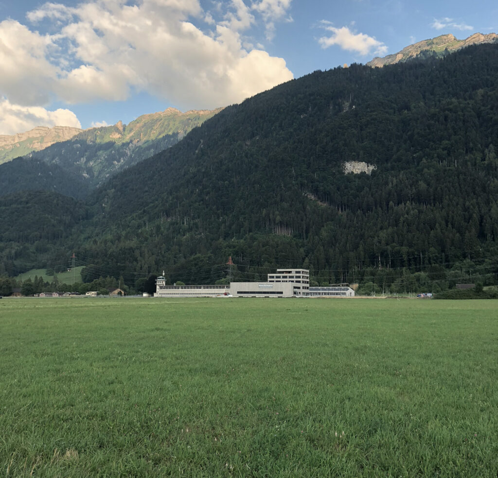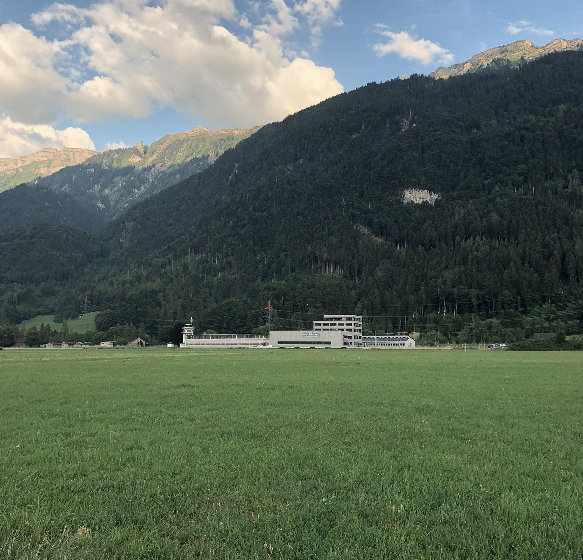 Auf dem Areal des ehemaligen Militärflugplatzes Interlaken wurde ein neues Dienstleistungsgebäude realisiert. Der Gebäudekomplex gliedert sich in zwei Hauptvolumen: eine Produktionshalle und einen Büroturm für den Engineering-Bereich. Im Dachgeschoss des Turms wurde zusätzlich eine Dienstwohnung integriert.
