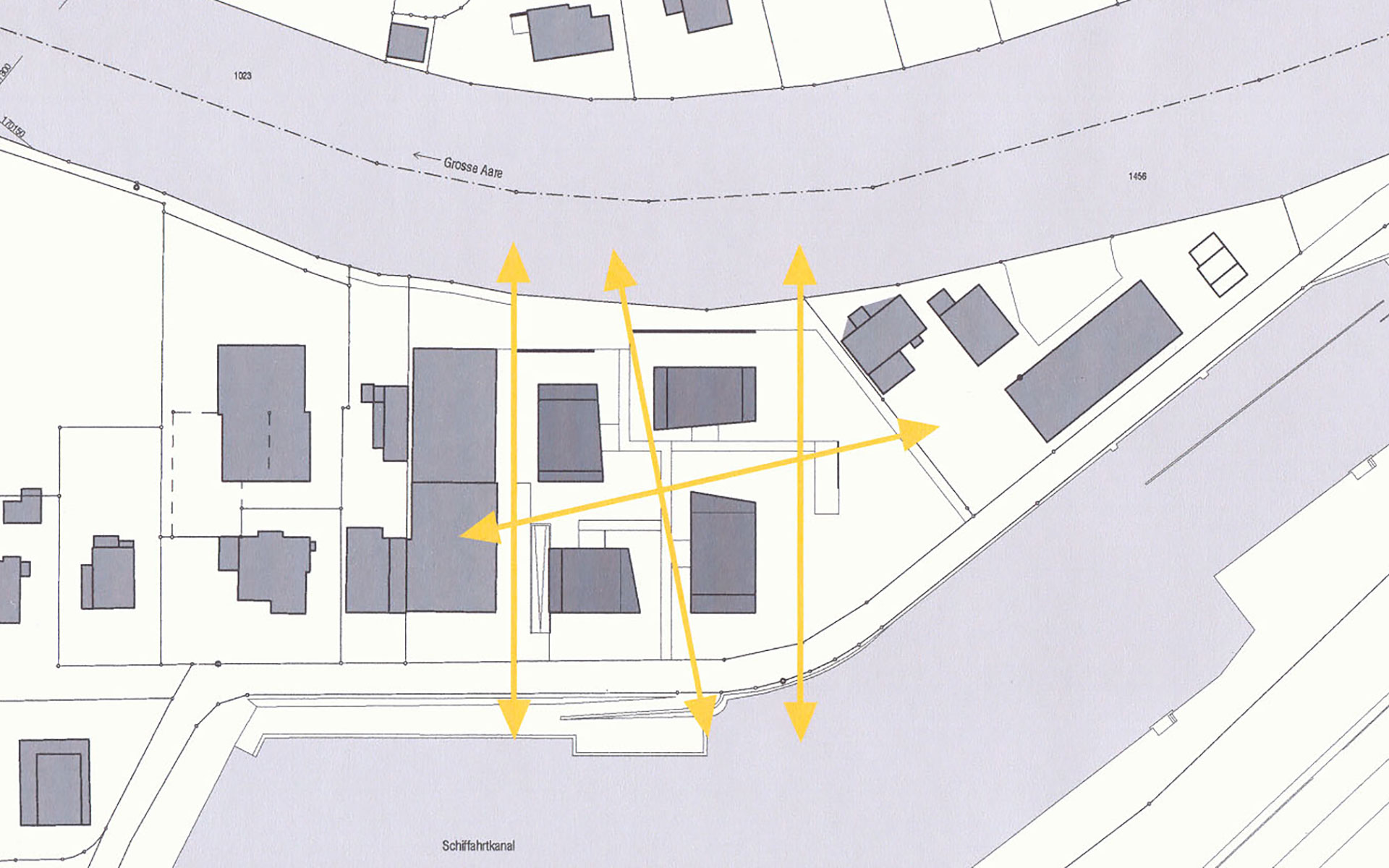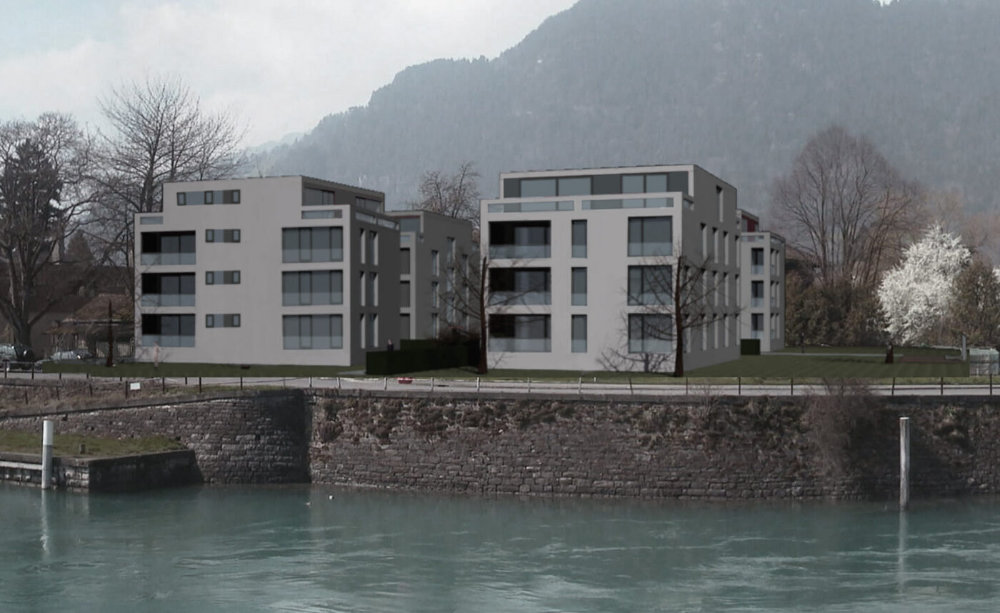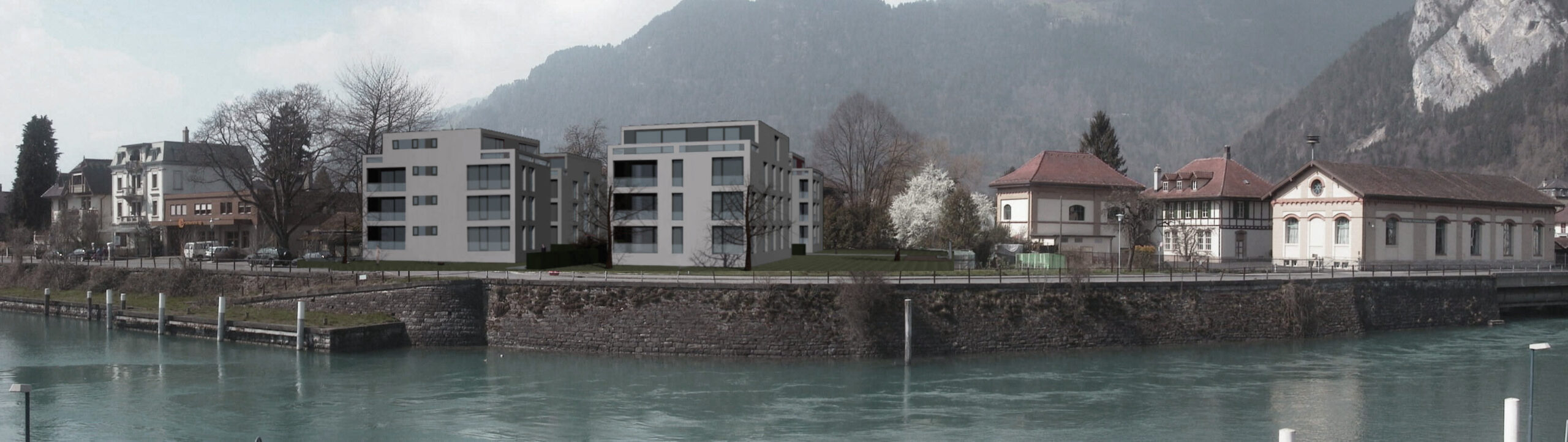 Auf der Brache des ehemaligen Schlachthauses Interlaken wurde eine Wohnanlage mit städtebaulichen Qualitäten und attraktiven Eigentumswohnungen mit einer hohen Dichte entwickelt. Die Wiederaufnahme des Typus der Stadtvilla geschieht im Kontext zur städtebaulichen Situation. Die Aufteilung in 4 Gebäude erlaubt für alle Wohnungen eine mindestens 3-seitige Orientierung, die meisten Wohnungen können jeweils ein ganzes Geschoss für sich beanspruchen. Dadurch entstanden 19 grosszügige, gleichwertige und trotzdem individuelle Wohnungen. Jede Wohnung profitiert gleichermassen von der attraktiven Lage. Zudem entstand für den Bewohner ein Gefühl von Grosszügigkeit und Einmaligkeit seiner Wohnsituation. Die einzelnen Wohnungen erhalten durch die unterschiedliche Anordnung und Orientierung der Loggien jeweils einen anderen Charakter. Die Loggien selbst sind von ihrer Konzeption her als eigentliche „Freiluft-Zimmer“ zu verstehen. So entstand eine Wohnanlage mit ganz unterschiedlichen und dennoch ausschliesslich sehr attraktiven Wohnungen.