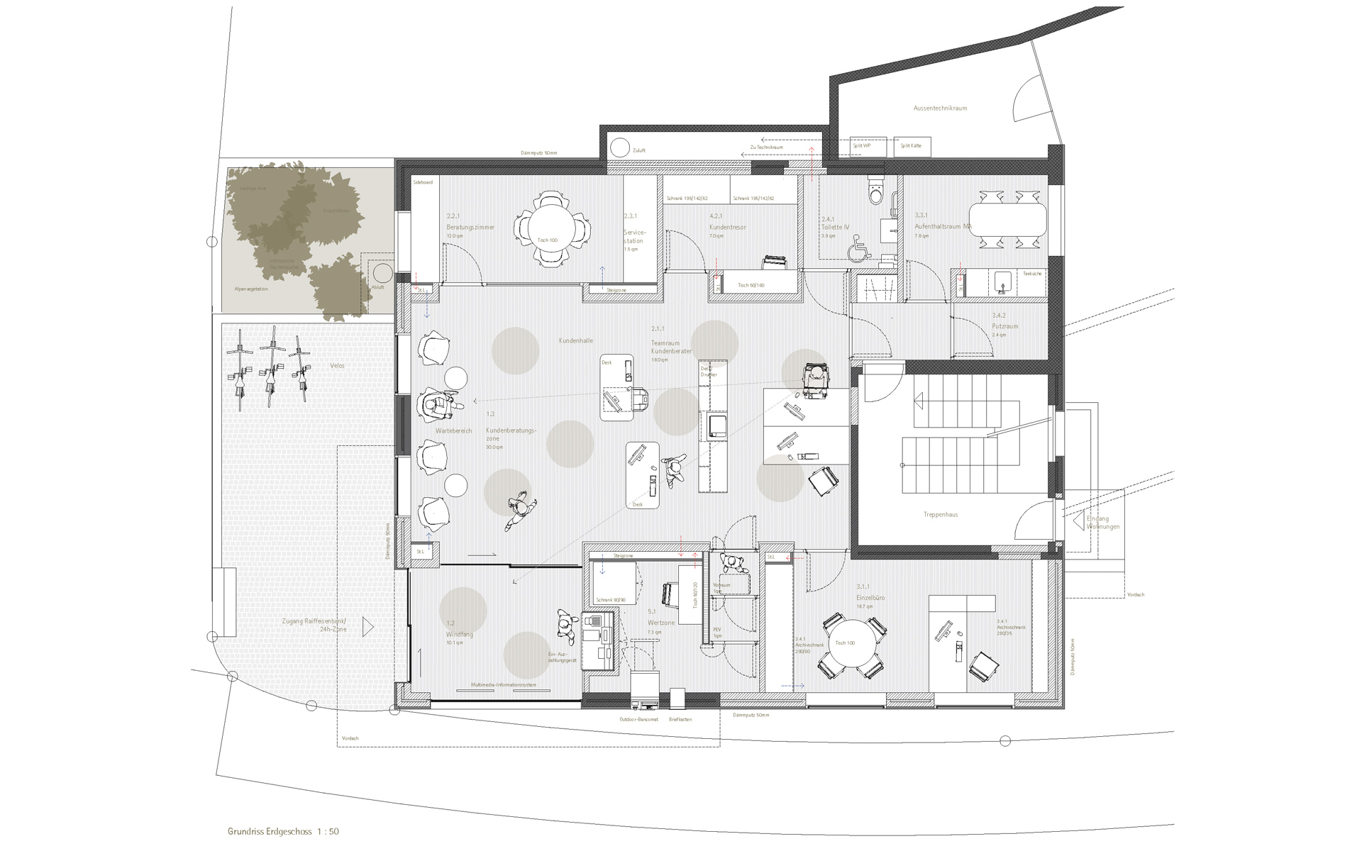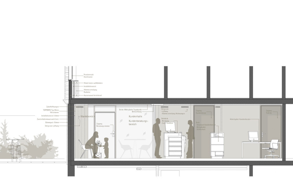 Die Zielsetzung des Entwurfs ist eine effiziente, klar strukturierte Bank, welche in ihrer Ausgestaltung die alte „Stubenbank“ zitiert und damit eine hohe Wohnlichkeit ausstrahlt.
