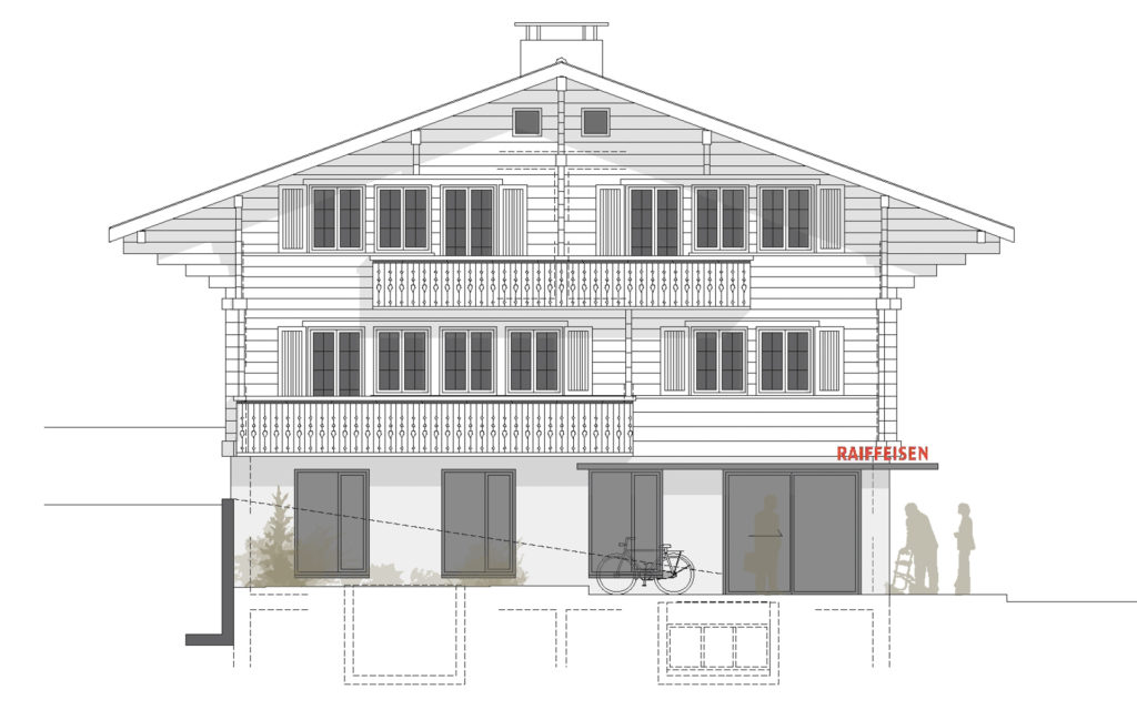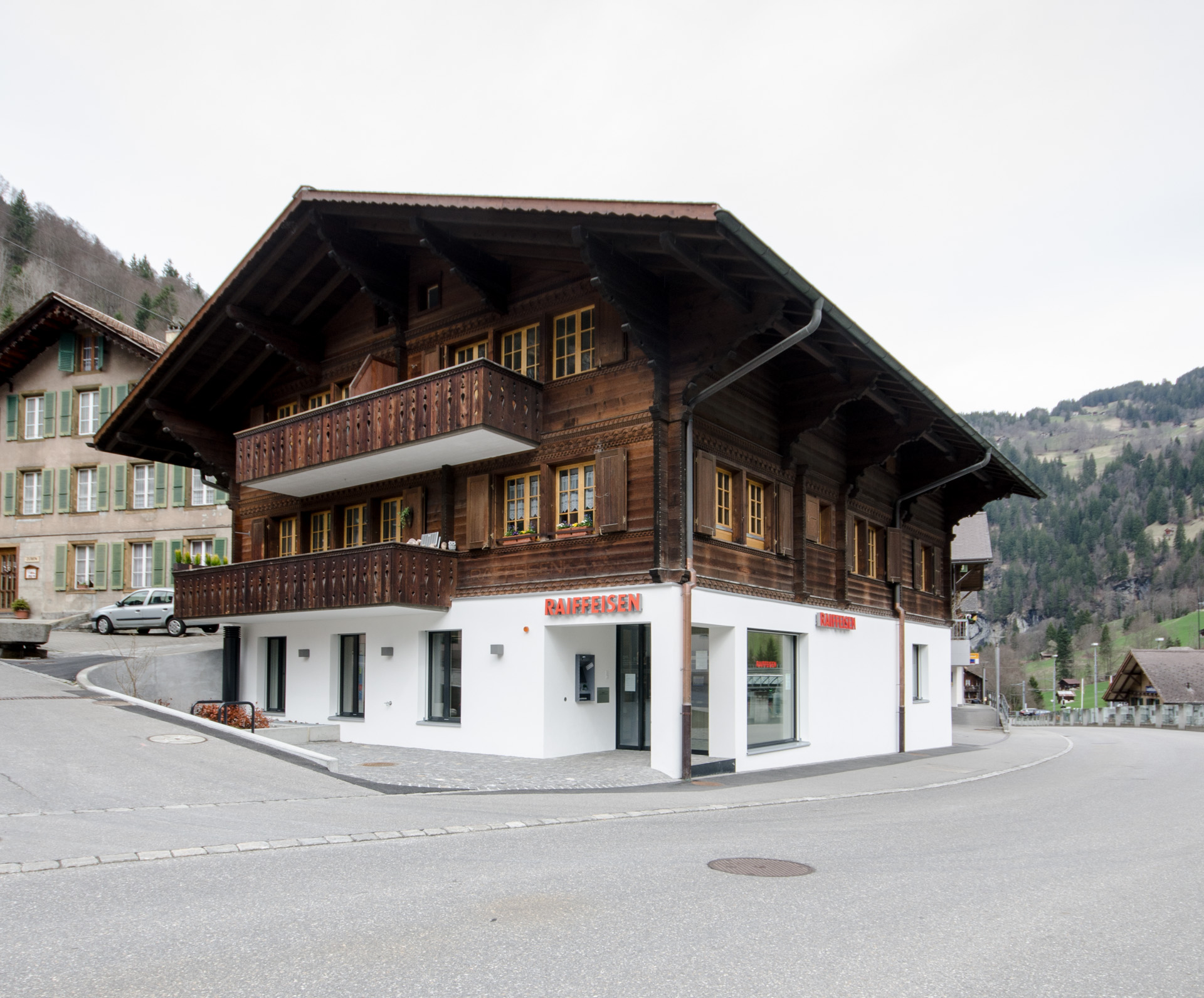 Bauherr: Raiffeisenbank Lütschinentäler / Status: realisiert / Jahr: 2016/ Art: Dienstleistung/ Standort: Lauterbrunnen BE / Planung und Bau: 2016