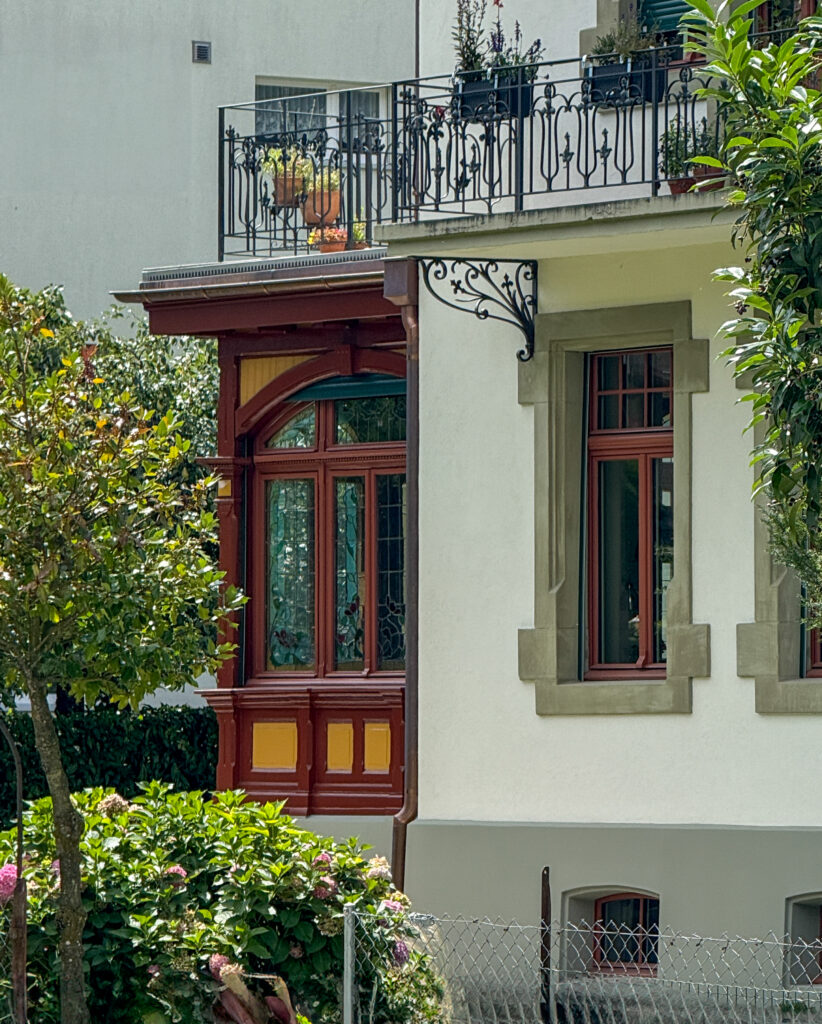 Der rekonstruierte Jugendstilgarten bildet mit dem Haus eine stimmige Einheit und verleiht der Liegenschaft ihre ursprüngliche Wirkung als sorgfältig komponiertes Gesamtensemble zurück.